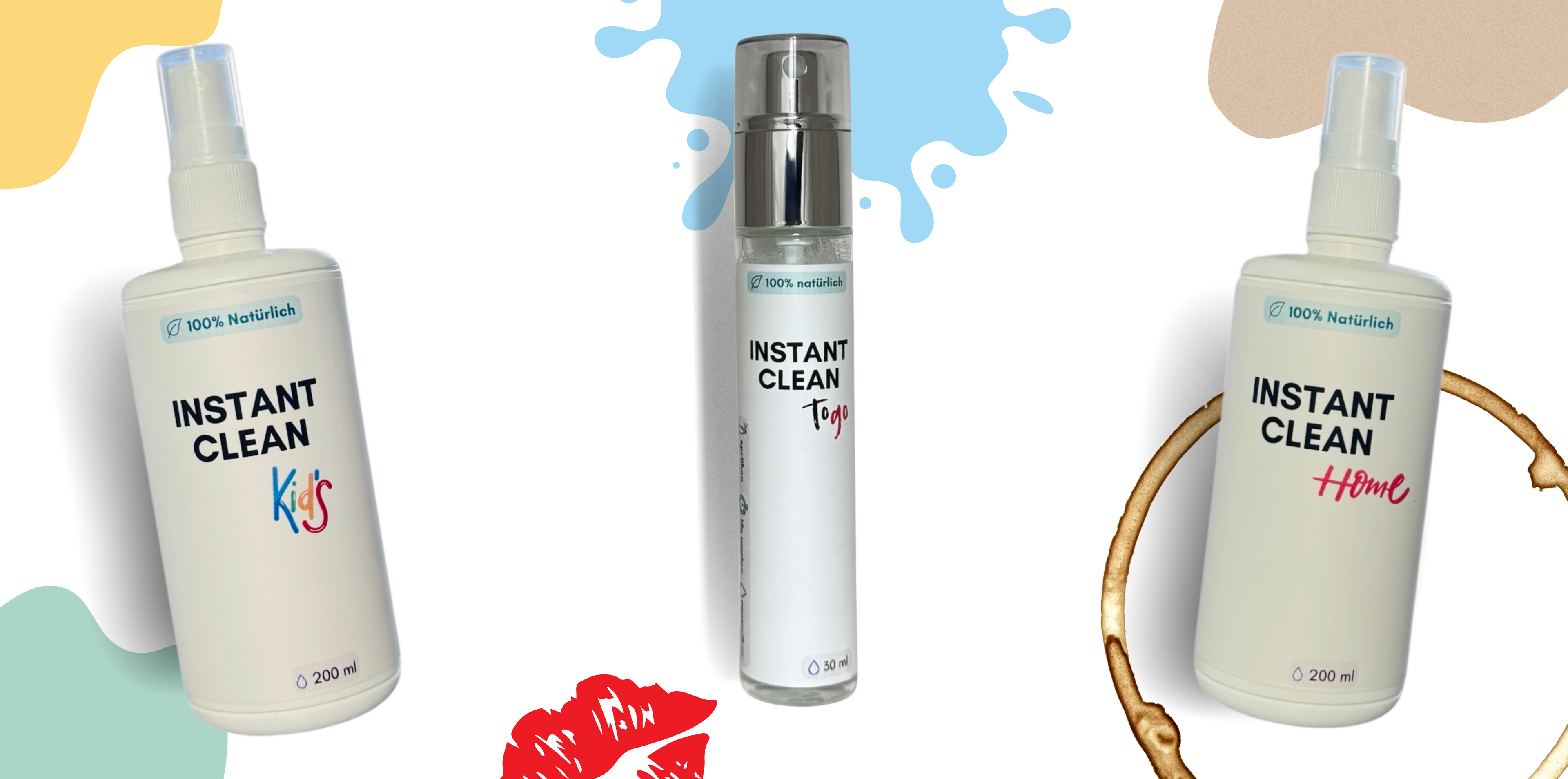 InstantClean Fleckenentferner Spray ist darauf ausgelegt, selbst die hartnäckigsten Flecken wie Kaffee, Wein, Öl, Make-up, Lippenstift oder Schokolade zu bekämpfen. Ob zu Hause oder unterwegs, InstantClean macht die Fleckenentfernung mühelos.